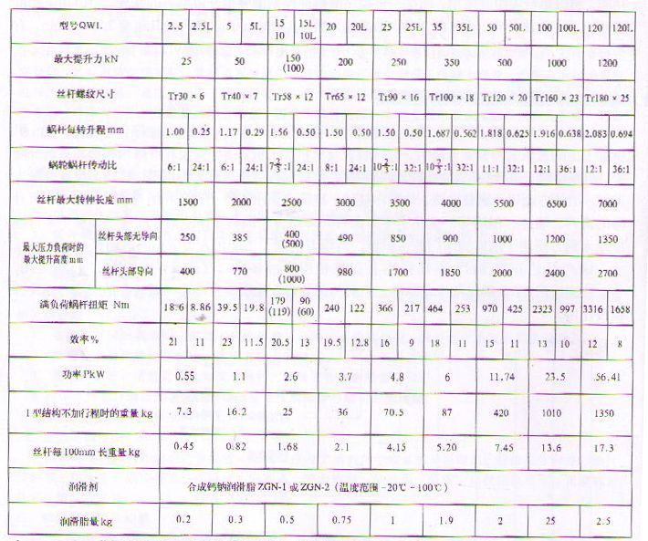 QWL蝸輪絲桿升降機是一種基礎起重部件,符合JB/T8809—1998(原JB/ZQ4391—86)標準。該產品可廣泛用于機械、冶金、建筑、化工、醫(yī)療、文化衛(wèi)生等各個行業(yè)。承載能力2.5—120T。具有結構緊湊、體積小、重量輕、動力源廣泛、噪音小、安裝方便、使用靈活、功能多、配套形式多、可靠性高、使用壽命長等優(yōu)點。具有提升、降落、推進、翻轉等功能,可以單臺或組合使用。QWL絲桿升降機能按一定程序準確地控制調整提升或推進的高度,可以用電動機或其它動力直接帶動,也可以手動。最高輸入轉速1500r/min,最大提升速度2.7m/min。有不同的結構型式和裝配方式,提升高度按用戶的要求制造。該裝置可以自鎖。