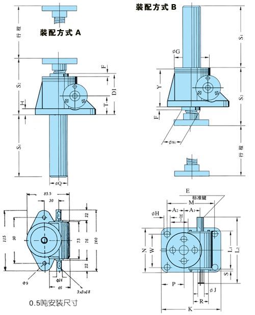QWL絲桿升降機絲桿頭部型式